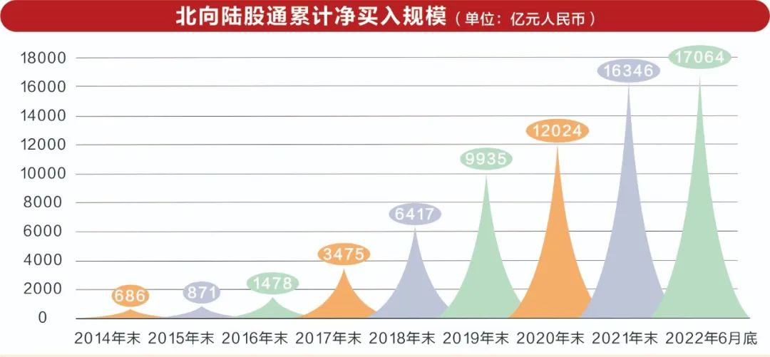 2014年以來,互聯互通機制下股票通的建立為兩地證券市場“資金池”提供了一個有效的貫通管道,進一步加強了兩地證券市場的聯系。北向方面,2014年11月陸股通從零起步,2015年中,累計凈買入額就超過了1000億元,2020年累計凈買入額進一步突破1萬億元,截至目前累計凈買入額已達到1.7萬億元。南向方面,港股通累計凈買入額2019年突破萬億港元規(guī)模,目前約2.4萬億港元。