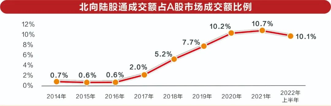 南北向資金成交額占對方股票市場的成交額的比重也總體連續(xù)提升,目前北向陸股通成交額占A股市場成交額比例已達一成的水平。南向港股通成交額占港股市場成交額比例也持續(xù)提升,目前已達約兩成。