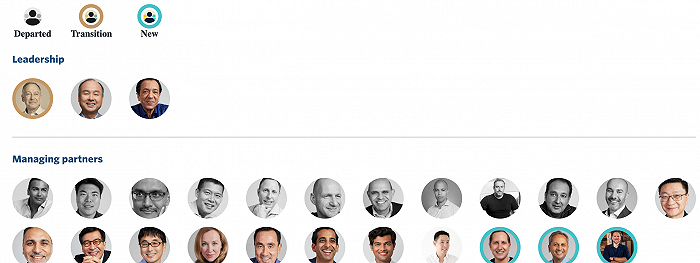 愿景基金部門自2020年開始高管的更迭情況,灰色為離職者 圖源:Pitchbook 資料來源:軟銀集團(tuán)公告和領(lǐng)英資料
