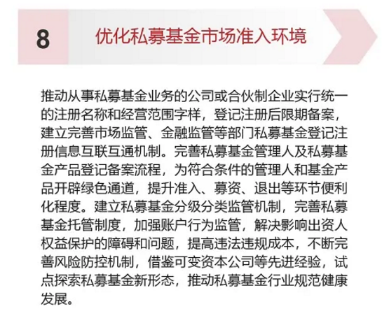 值得注意的是,清單中還包括了優(yōu)化私募基金市場準入環(huán)境和優(yōu)化創(chuàng)業(yè)投資企業(yè)市場準入和發(fā)展環(huán)境的內容。
