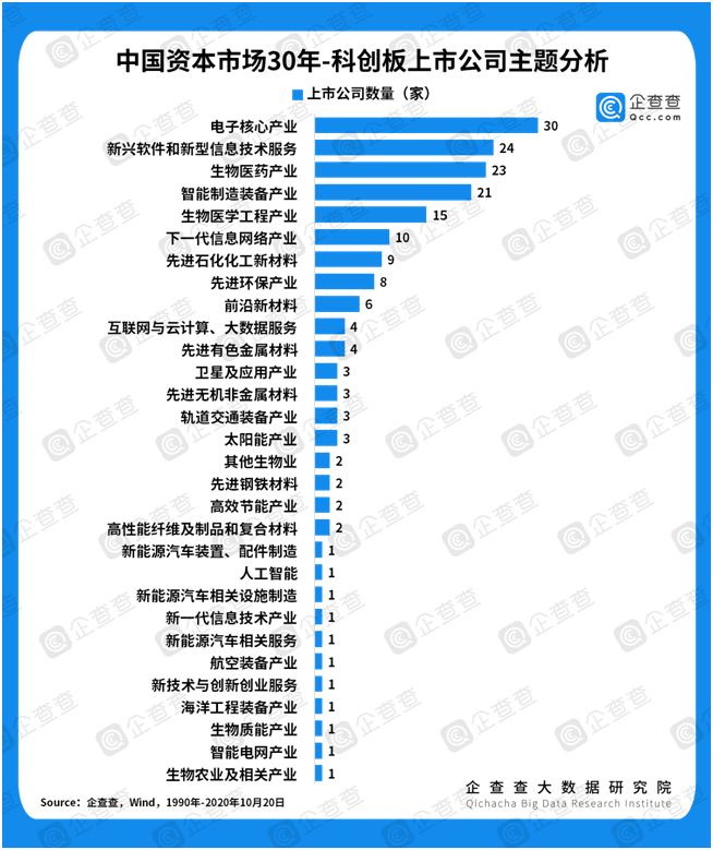“中國芯”相關(guān)上市公司成科創(chuàng)板最火“網(wǎng)紅”。企查查數(shù)據(jù)顯示,截至2020年6月,科創(chuàng)板共有上市公司185家。從上市主題來看,電子核心產(chǎn)業(yè)、新興軟件和新型信息技術(shù)服務(wù)、生物醫(yī)學(xué)產(chǎn)業(yè)擁有最多數(shù)量的上市公司,分別是30家、24家和23家。值得一提的是,在30家電子核心企業(yè)中,與芯片制造相關(guān)的企業(yè)高達(dá)15家。2020年7月,中芯國際、寒武紀(jì)先后登陸科創(chuàng)板,前者(中芯國際)一躍成為科創(chuàng)板市值最高的上市公司,后者(寒武紀(jì))有“AI芯片第一股“之稱。